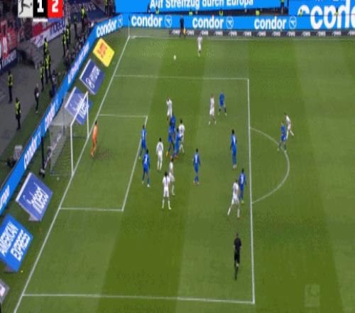 第50分钟,扳回一城,科赫二连击完成破门,法兰克福1-2