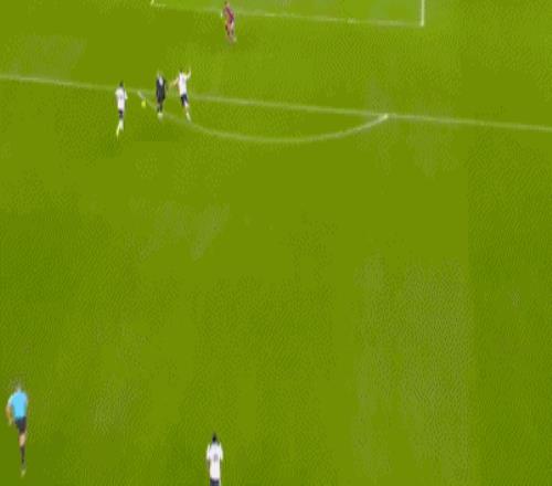 下半场,托特纳姆热刺强势反扑,第53分钟,索兰克乱战中打进一球,慢动作显示,索兰克射门时并没有踢到足球,而是踢在曼城后卫的脚腕上将球打进的。